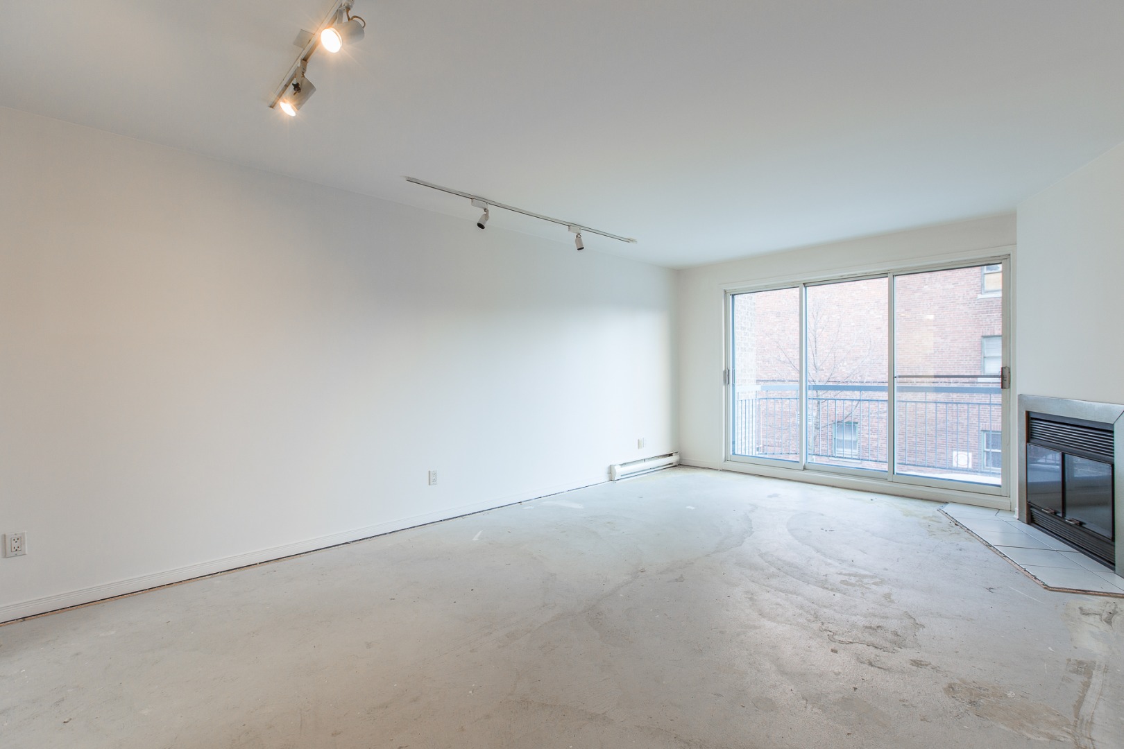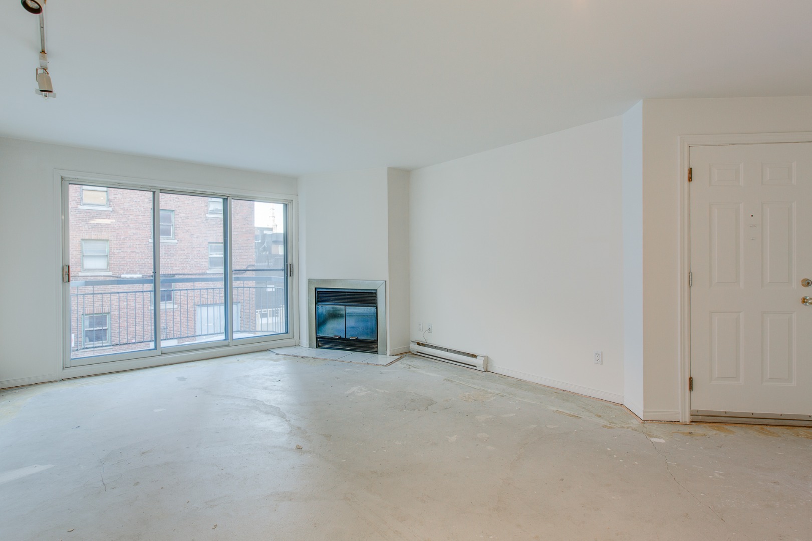 Condo for renovator close to all services (Grocery, restaurants, 2 steps from the Métro Berri-UQAM, University etc.) Air conditioning, wood fireplace, 2 bedrooms, outdoor parking, 2 balconies front and rear. Concrete floor since all the carpet was removed. Freshly painted. Easy to visit