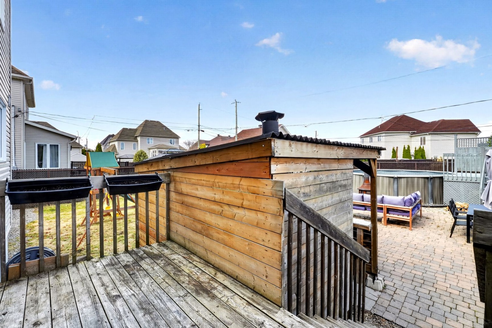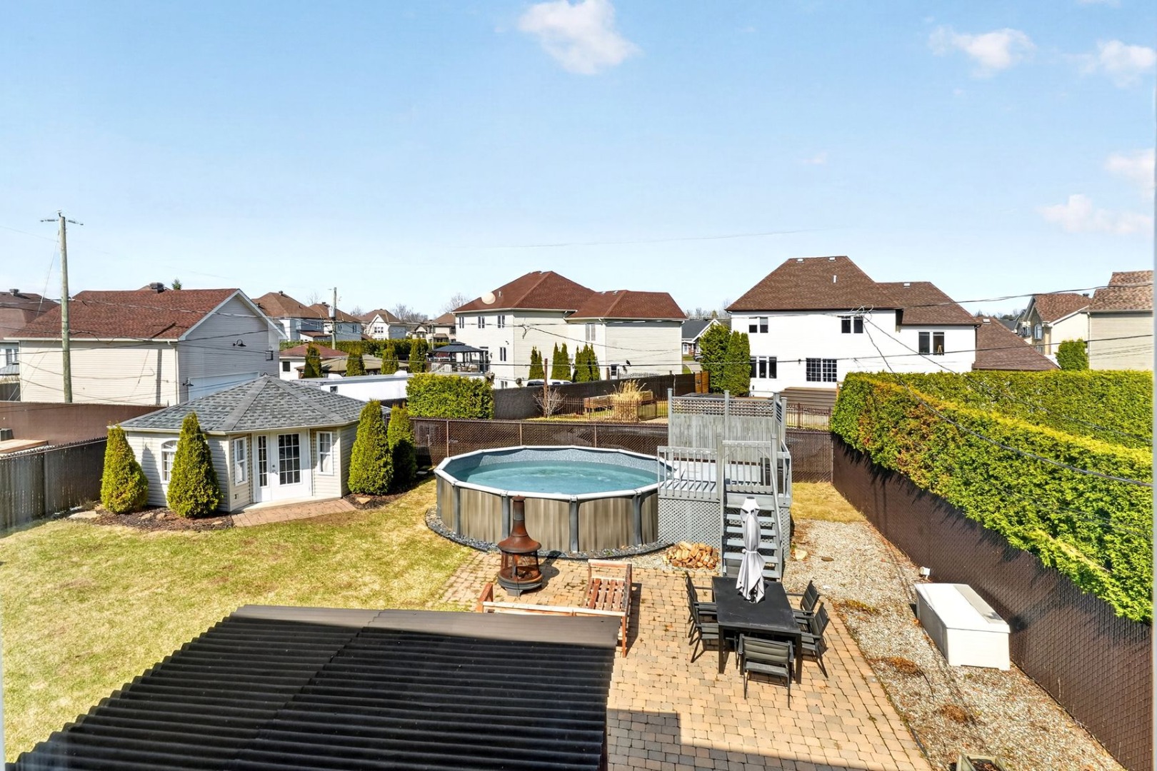 House for sale in Blainville – 17 Provence StreetThis beautiful property is ideal for families looking for space, comfort and a pleasant lifestyle in Blainville. From the moment you arrive, the impressive façade and integrated garage set the tone for this well-maintained home. Inside, you will find bright and inviting living spaces, perfect for everyday life as well as entertaining. The living room features a gas fireplace that adds warmth and charm. The kitchen, completely renovated in 2023, offers a modern and functional design with plenty of storage and convenient pull-out drawers, a highly practical feature for daily use. The home includes 4 bedrooms, including one in the basement (possibility of a 5th if the family room above the garage is used), making it easy to accommodate a growing family, a home office or guest rooms. It also offers 1 full bathroom, 1 powder room, and plumbing already in place in the basement for the future addition of a second full bathroom. Outside, the backyard truly stands out with its generous size and layout designed for summer enjoyment: above-ground pool, large patio area, outdoor bar and a spacious shed. A great setting to relax or entertain family and friends. Additional features include a wall-mounted heat pump installed in 2025 for enhanced comfort, as well as an electrical panel ready for a generator. Located in a sought-after area of Blainville, this property benefits from a family-friendly setting close to services, schools, parks and major roadways. A great opportunity not to be missed. Link for 3D Virtualk tour: https://www.tourbuzz.net/2381309?a=1 |