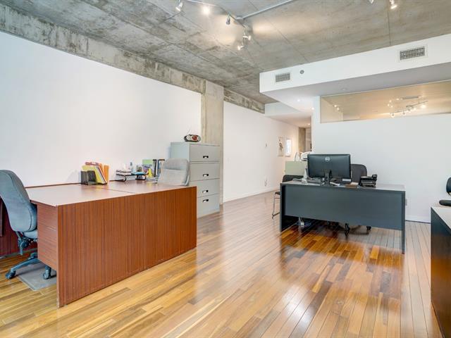 Condo Commercial de style loft 100,7m2 plein pied, design moderne, stationnement intérieur. Situé dans l'édifice Unity 2, en plein centre du quartier international à quelques pas du métro Square-Victoria-OACI, de Square-Victoria, du Centre Bell, du Vieu