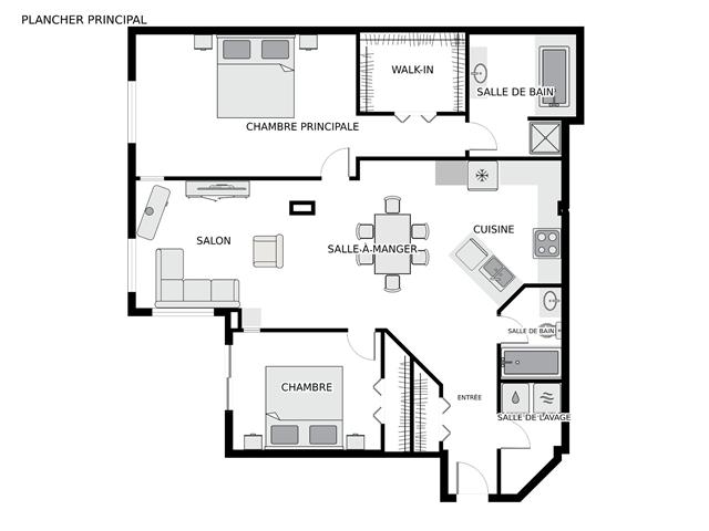 Situé au 2e étage d'un immeuble paisible, ce grand condo de 2 chambres offre un espace de vie chaleureux et bien pensé. La pièce principale à aire ouverte, regroupe salon, salle à manger et une cuisine avec îlot central, idéale pour recevoir. La chambre p