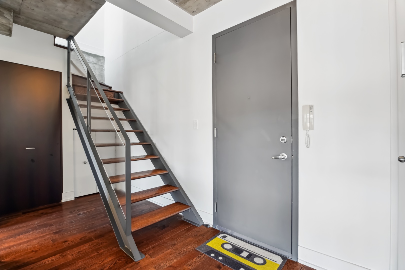 Découvrez ce condo de style loft industriel avec plafonds de béton. Situé au dernier étage sur 2 niveaux avec terrasse privée, ce condo allie élégance et modernité. Il comprend 2 chambres spacieuses, 2 salles de bains, une cuisine avec comptoirs en quartz rénovée en 2022 et un espace bureau. Le salon et la salle à manger, inondés de lumière naturelle grâce aux fenêtres mur à mur, vous réservent un magnifique espace de vie. Profitez de votre grande terrasse privée sur le toit avec une vue imprenable sur le Stade, pour vous détendre ou recevoir. Inclut de superbes couchers de soleil, un garage et un espace de rangement privé au sous-sol.