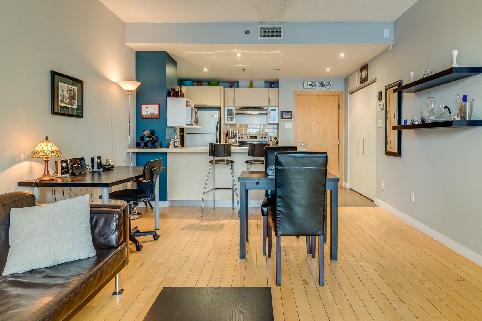 Le Central, au coeur de l'action, à 2 minutes à pied du Vieux Montréal et près du métro. Condo avec une chambre à coucher fermée, espace aire ouverte: cuisine, salon et salle à manger avec comptoir lunch. Balcon, piscine creusée et terrasse sur le toit avec BBQ, salle de gym. Idéal pour professionnel, personne seule ou couple sans enfants.