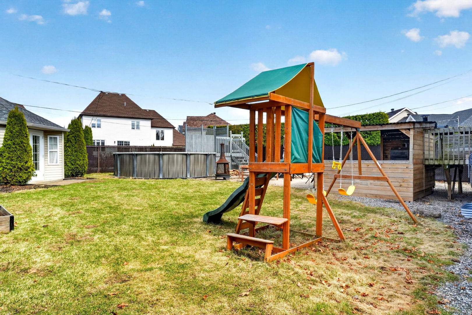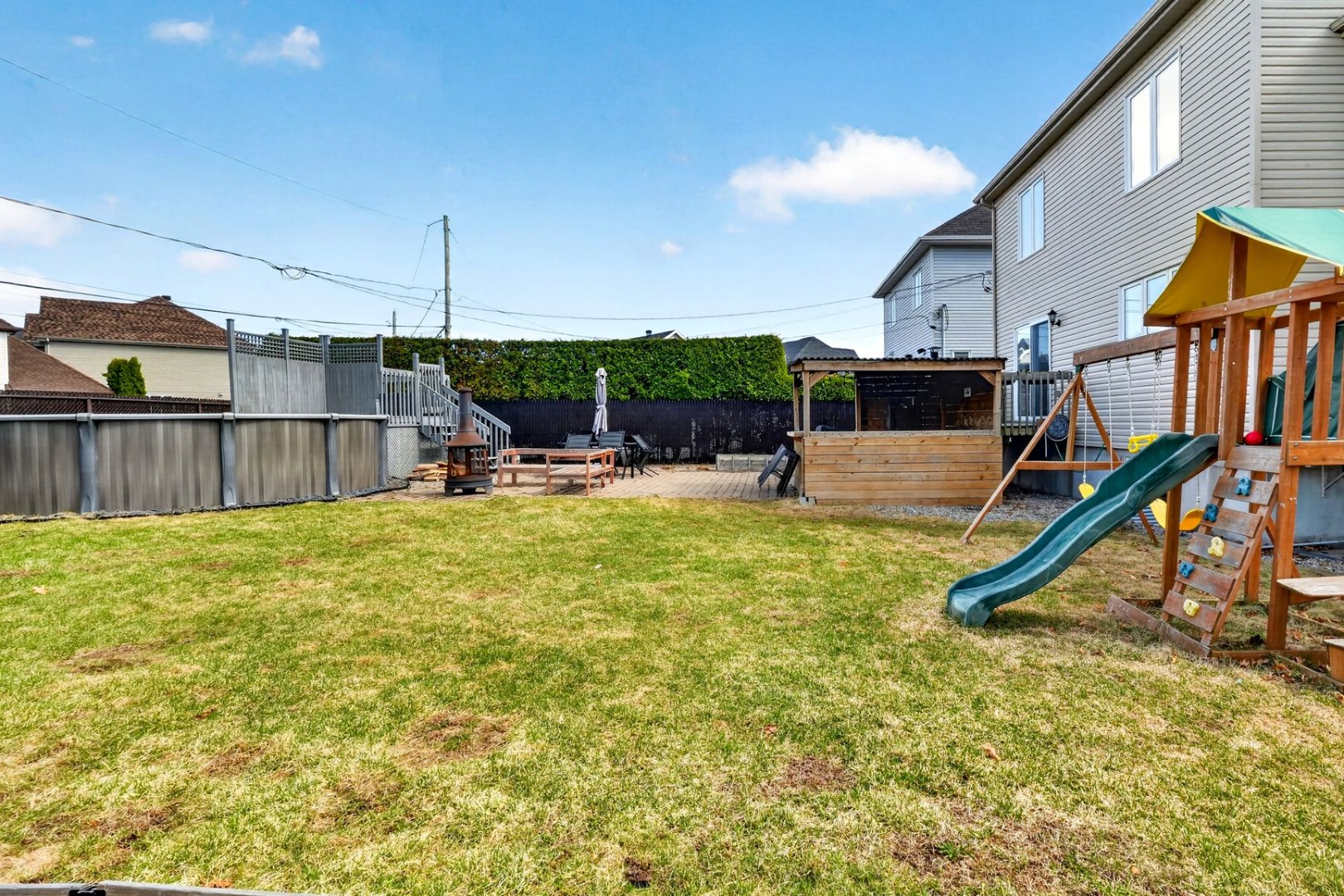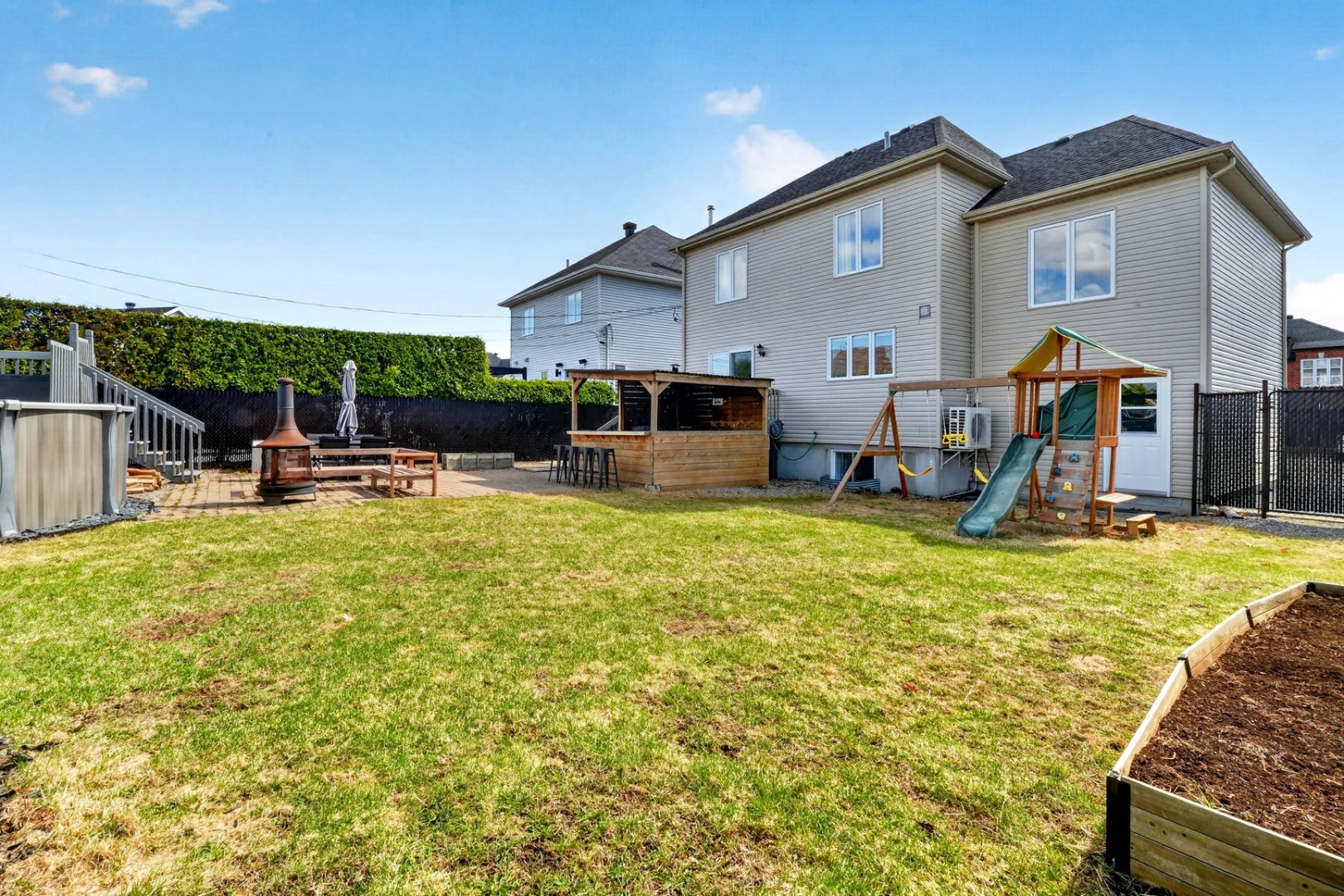 Maison à vendre Blainville - 17, rue de ProvenceCette belle propriété saura plaire aux familles à la recherche d'espace, de confort et d'un cadre de vie agréable à Blainville. Dès l'arrivée, la façade imposante et le garage intégré donnent le ton à cette maison bien entretenue. À l'intérieur, vous découvrirez des pièces lumineuses et accueillantes, parfaites pour la vie quotidienne comme pour recevoir. Le salon, agrémenté d'un foyer au gaz, crée une ambiance chaleureuse et conviviale. La cuisine, entièrement refaite en 2023, propose un style actuel et fonctionnel avec de nombreux rangements ainsi que des tiroirs coulissants dans les armoires, un atout très apprécié au quotidien. La maison offre 5 chambres (dont une au sous sol), permettant d'aménager aisément des espaces pour la famille, le télétravail ou les invités. Elle comprend également 1 salle de bain, 1 salle d'eau, ainsi qu'une installation de plomberie déjà prévue au sous-sol pour la création éventuelle d'une 2e salle de bain. À l'extérieur, la cour arrière se démarque par ses belles dimensions et son aménagement pensé pour profiter pleinement de la saison estivale : piscine hors terre, grand espace patio, bar extérieur et grand cabanon. Un environnement idéal pour relaxer ou recevoir famille et amis. Grand stationnement pour 4 voitures plus 1 voiture dans le garage, plus 1 autre sur le coté de la maison (idéal pour roulotte ou remorque). Parmi les autres éléments intéressants : thermopompe murale 2025 pour un meilleur confort, ainsi qu'un panneau électrique prévu pour génératrice. Située dans un secteur recherché de Blainville, cette propriété profite d'un environnement familial à proximité des services, écoles, trains de banlieue parcs et axes routiers. Une occasion à ne pas manquer. |