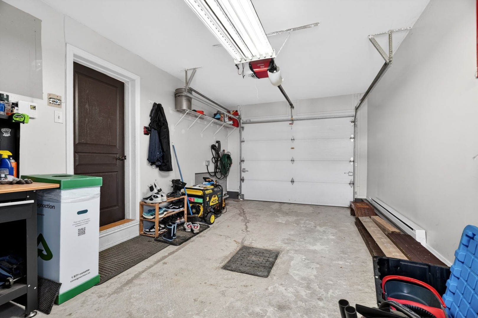 | Génératrice, Borne électrique, Étagère et établie dans le garage. |