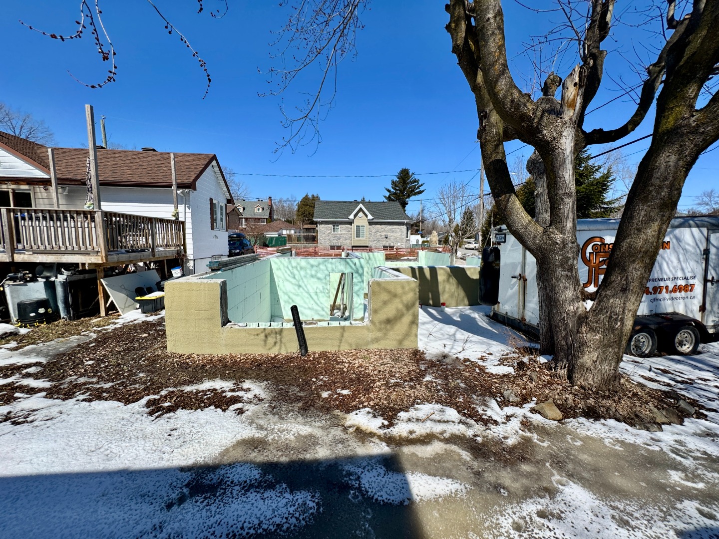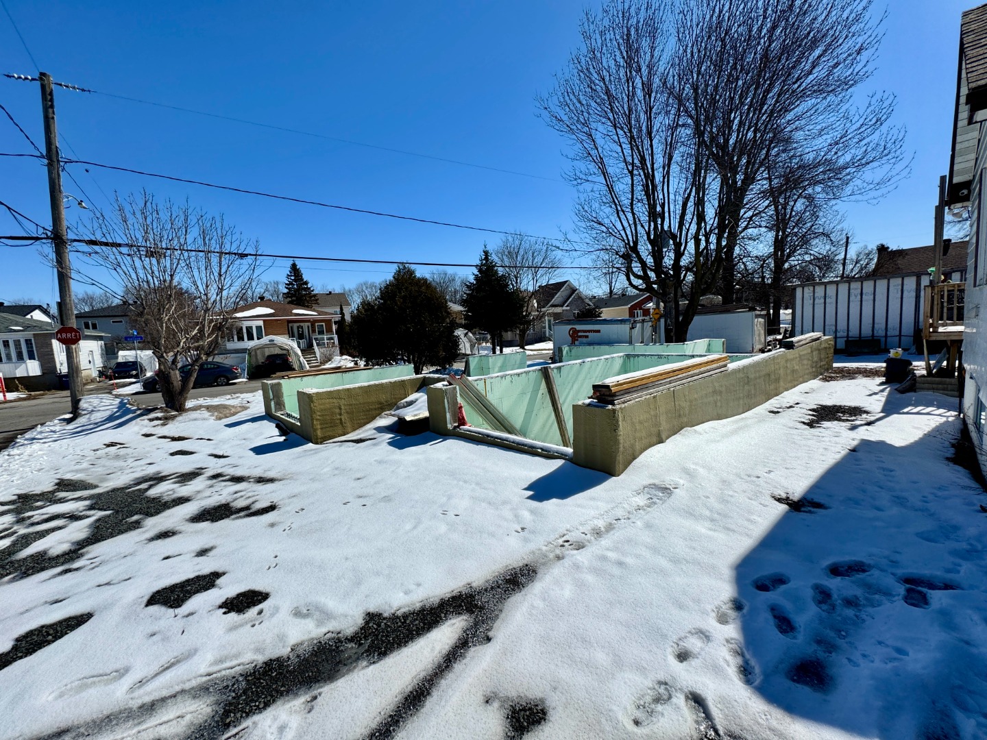 | Occasion de concrétiser un projet résidentiel déjà bien avancé. Ce terrain d'angle est vendu avec fondation en place, services installés, plans d'architecte et permis acceptés par la Ville de Laval pour la réalisation d'une résidence unifamiliale contemporaine. Les documents consultés présentent un projet réfléchi, réparti sur 3 niveaux, offrant une configuration spacieuse et actuelle. Selon les plans, la future propriété pourrait proposer jusqu'à 5 chambres, 3 salles de bains, une salle d'eau, un garage intégré, une salle de lavage, des walk-in, un balcon ainsi qu'une grande terrasse arrière. Le rez-de-chaussée a été pensé pour la vie de tous les jours avec hall d'entrée, garage intégré, salle d'eau, séjour, salle à dîner et cuisine ouverte donnant sur l'extérieur. L'étage prévoit plusieurs chambres, des salles de bains bien réparties, des espaces de rangement intéressants et un aménagement adapté à la vie familiale. Le sous-sol, selon les plans, ajoute encore à la polyvalence du projet avec chambres additionnelles, salle de bain complète, salle mécanique et espaces habitables supplémentaires. La construction projetée mise sur la technologie de coffrages de béton isolés Nudura. La brochure du fabricant présente ce système comme une solution reconnue pour son isolation continue, son excellente étanchéité à l'air, sa résistance supérieure, son confort accru et son potentiel d'économies d'énergie pouvant aller jusqu'à 58 % selon les tests cités. Les documents de construction mentionnent également des murs de fondation en coffrages isolés type Nudura, ce qui peut représenter un atout intéressant pour un acheteur souhaitant poursuivre un projet axé sur la performance et la durabilité. Projet avec beaucoup de travail déjà amorcé. Une belle occasion pour un acheteur de reprendre une vision contemporaine avec permis et plans en main, tout en validant à sa satisfaction la faisabilité, les coûts et la conformité finale du projet. |