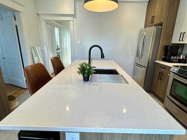 | La cuisine, rénovée avec goût, offre un îlot central, des |